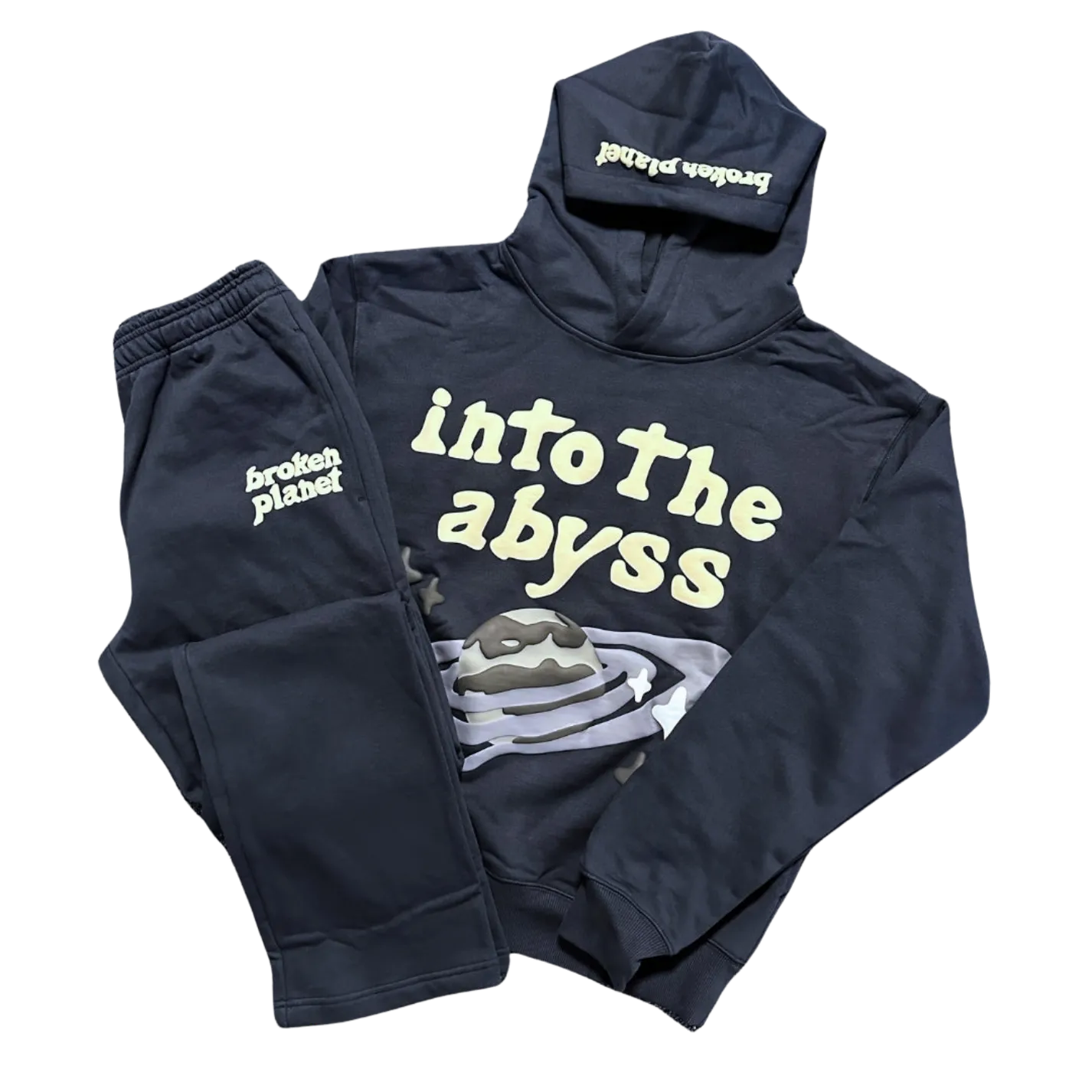 The Broken Planet Beware Soot Black Tracksuit offers a bold and edgy design that emerges with its deep, smoky tones and unique streetwear appeal. Crafted for both comfort and style, this tracksuit features premium fabrics and a casual fit, making it perfect for everyday wear or declaration looks. While it brings its own unique vibe, it pairs perfectly inspirit with the Broken Planet Into The Abyss Outerspace Blue Tracksuit, both showcasing the brand’s commitment to innovative design and urban aesthetics.